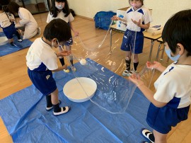 園の生活 ●園外保育 公園遊び、図書館体験、お買い物体験…楽しいことがいっぱい♪ ●学研教室 年長児になると、月に一度科学遊び教室があります。色々な実験をして、子ども達も毎月楽しみにしています♪ 前のページ